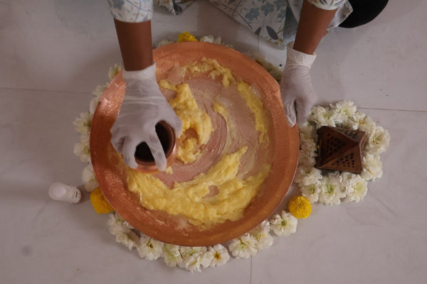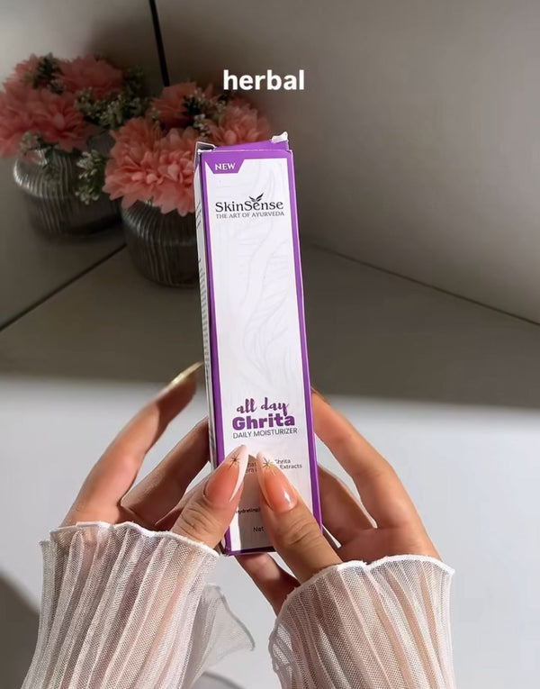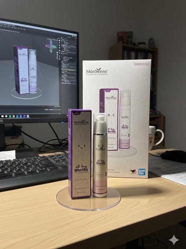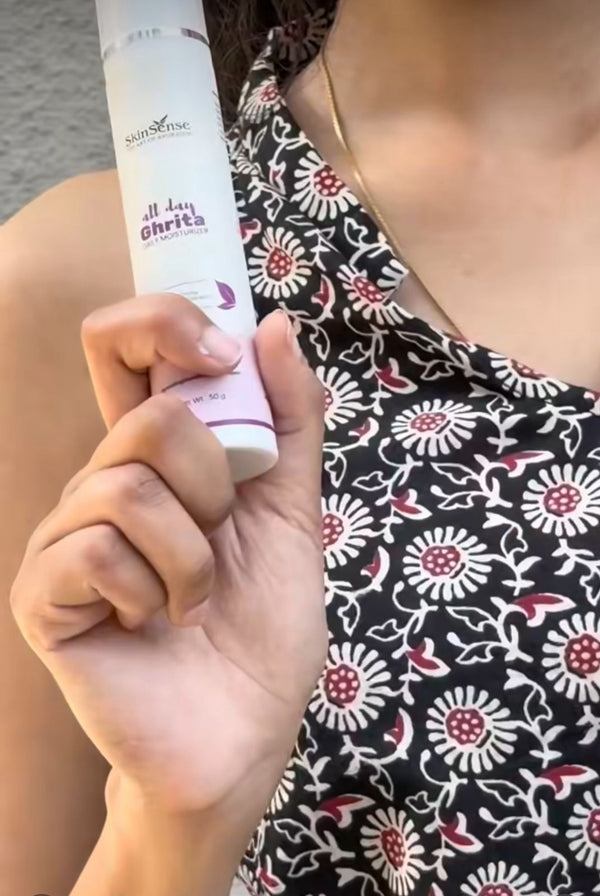In our formulation, we intentionally pair Shat Dhauta Ghrita with modern, skin-identical ingredients to enhance its performance and usability for today’s skin needs. Jojoba oil closely mimics the skin’s natural sebum, helping balance oil production while improving absorption. Caprylic/Capric Triglyceride provides lightweight moisturization and strengthens the skin barrier without heaviness, making the formula suitable for daily use. Aloe vera gel adds hydration, calming inflammation and supporting skin repair. Rose hydrosol naturally helps soothe inflammation, support the skin barrier, and maintain hydration while offering a soft, calming aroma without irritation.Together, this blend bridges Ayurvedic wisdom with modern cosmetic science - delivering deep nourishment, faster absorption, better stability, and visible skin comfort across skin types.